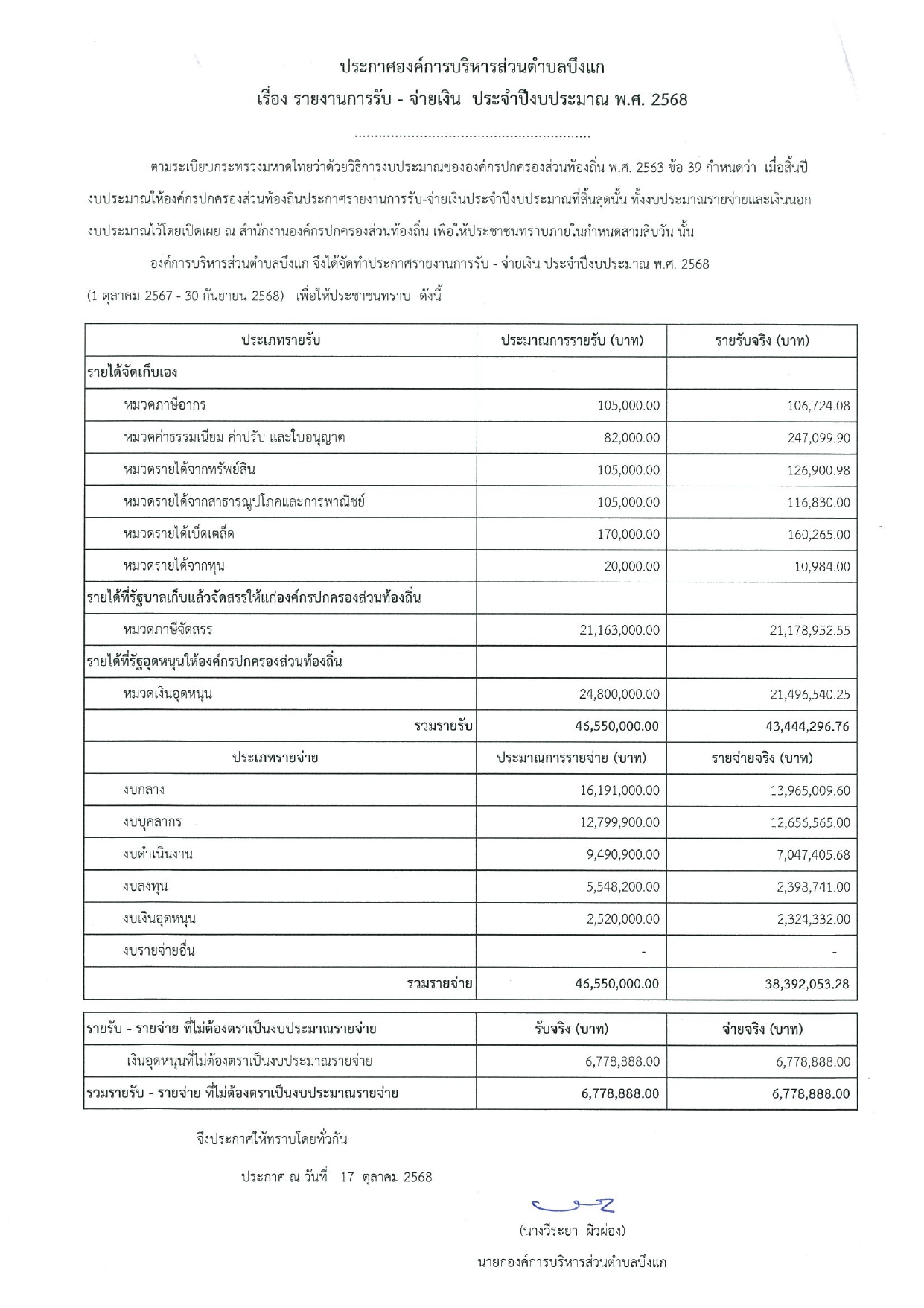 หัวข้อ :: รายงานรับ-จ่ายเงิน ประจำปีงบประมาณ 2568